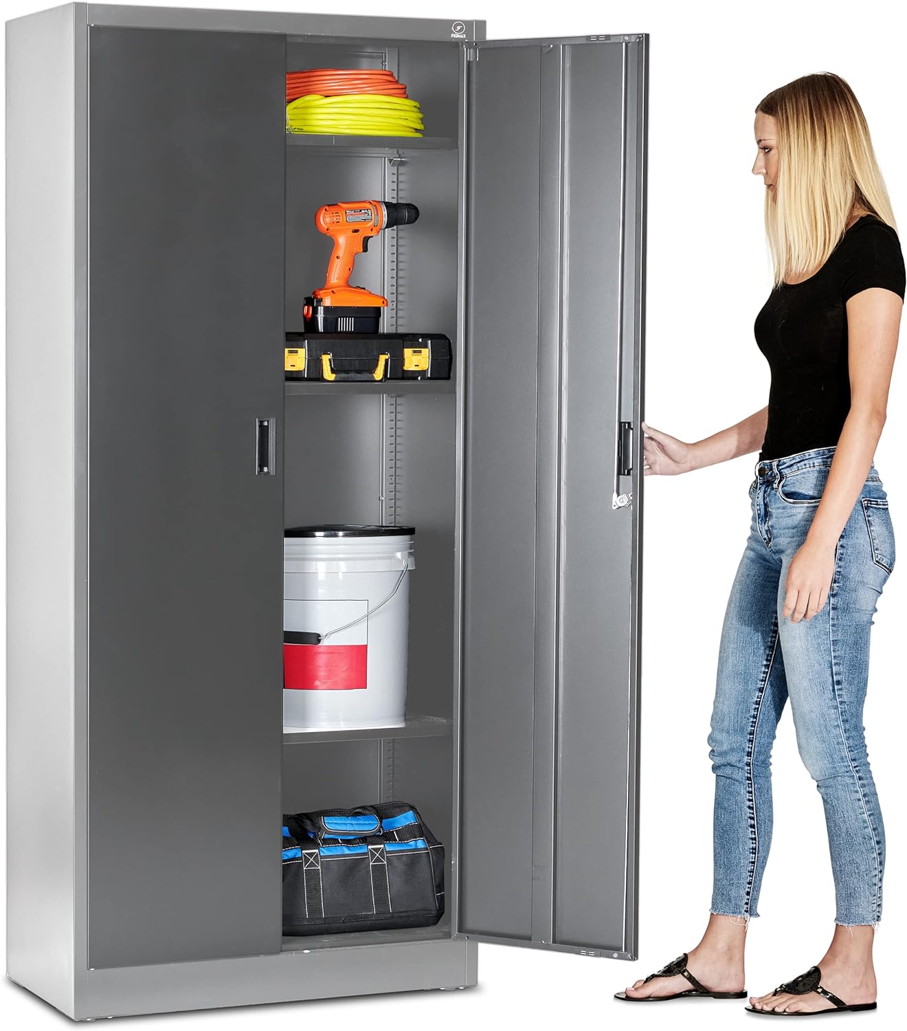 Fedmax Storage Cabine 71 Inch, Steel Utility Cupboard with Locks & Adjustable Shelves for Garage, Office, Classroom and Kitchen - Gray《NO8》