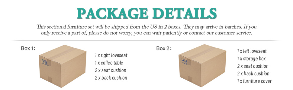 - This sectional furniture set will be shipped from the US in 2 boxes. They may arrive in batches.