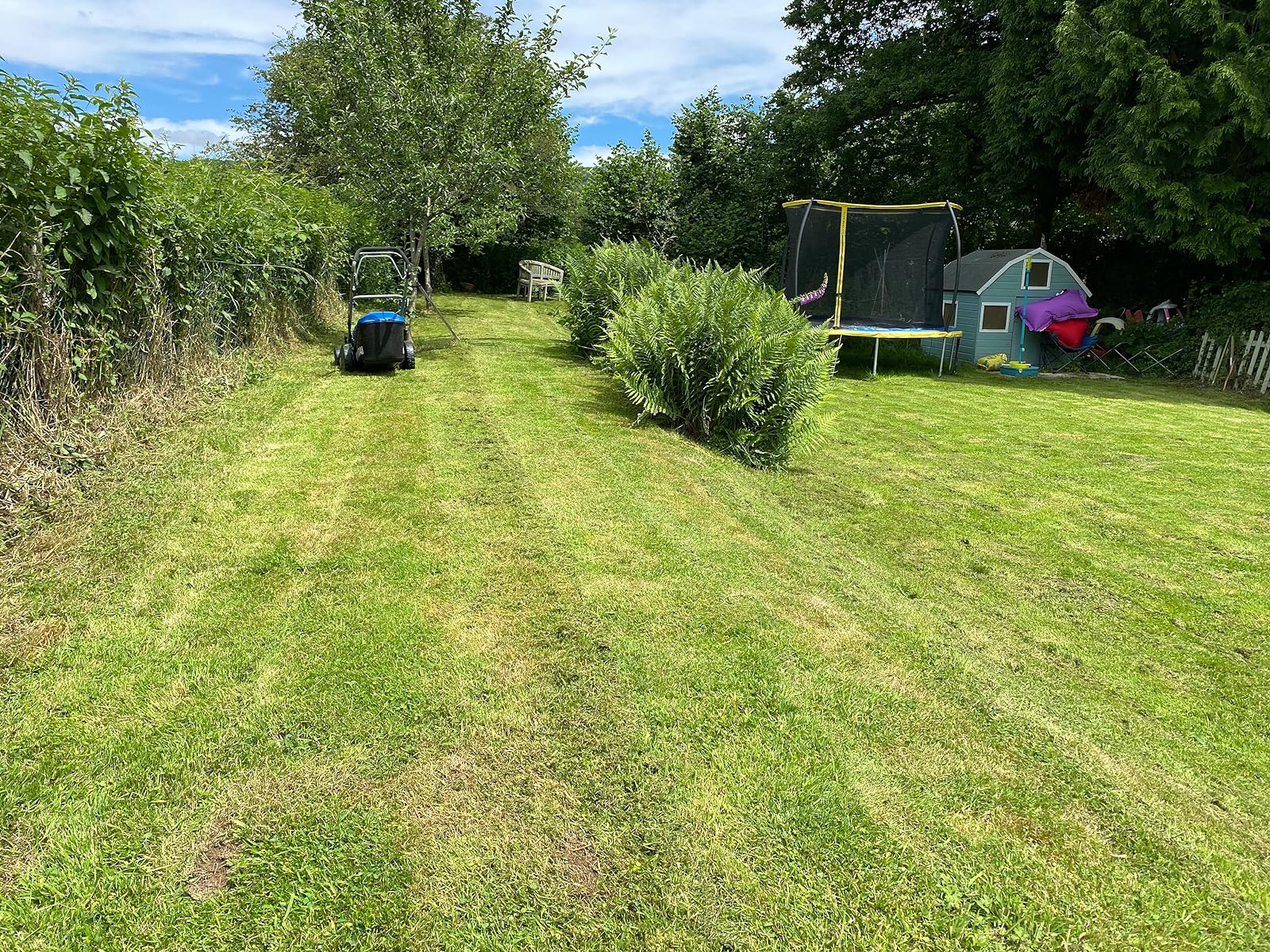 Our garden is fairly large and very uneven, being reclaimed field and we have had lots of moles over the years so it’s lumpy. This mower handles it all very well. The large rear wheels are excellent for getting over the bumps and it has plenty of self drive power. The cut height range is very good and easy to adjust. It starts reliably and seems reasonably economical. The folding handle is very useful for storage. No real complaints!