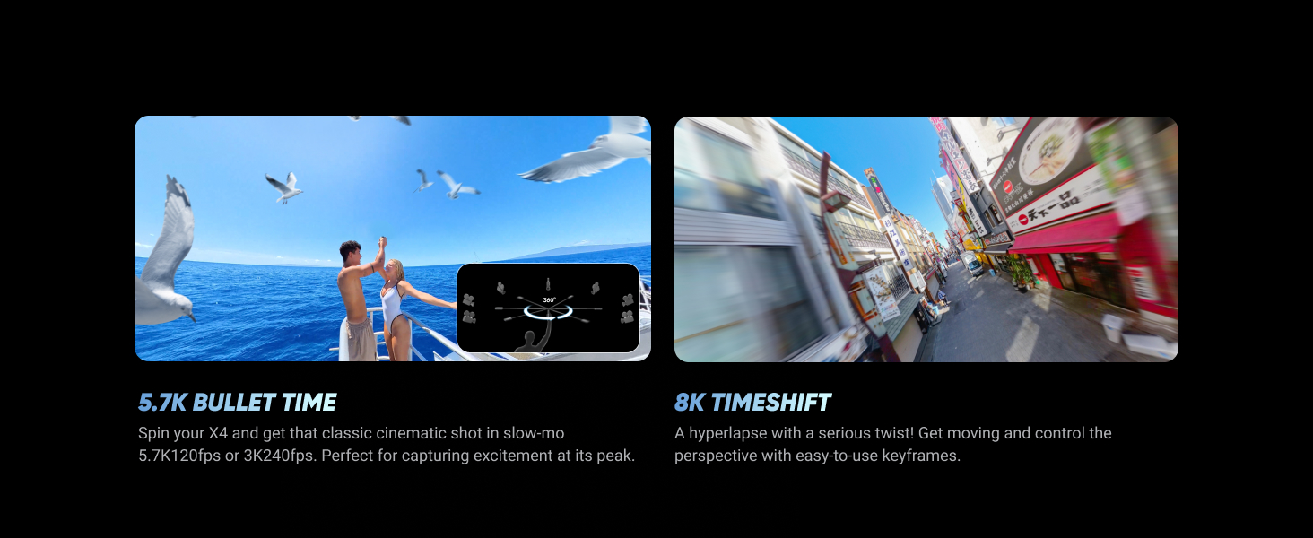 • IMMERSIVE 360 VIDEO - The 8K era is here. Insta360 X4 delivers 360° video in stunning 8K or 5.7K60fps! Use Active HDR to keep shots color accurate too, even in action scenarios.