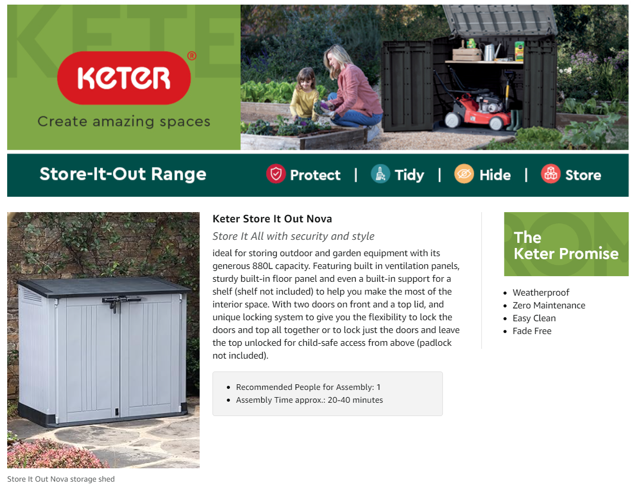 - Keter Store it Out Nova Outdoor Garden Storage Shed, 132 x 71.5 x 113.5 cm, Light Grey with Dark Grey Lid.