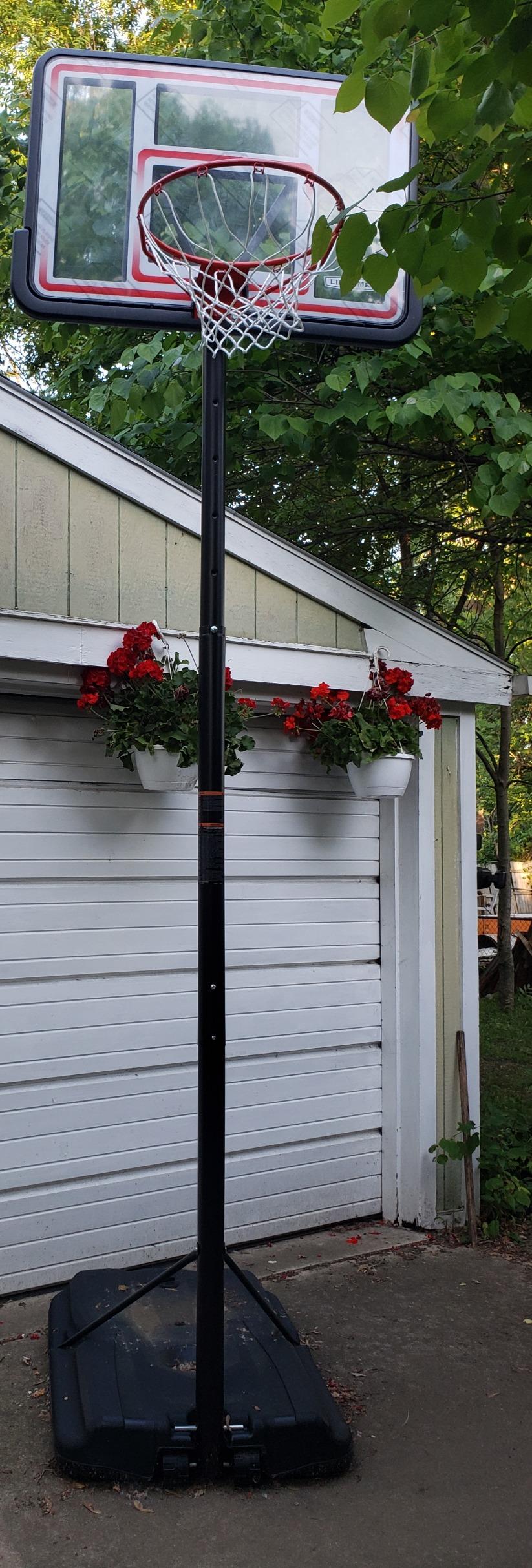 Great hoop for a group of kids. Placed two 60lb tube sandbags on top of the base and it didn't budge even on the windiest day. Perfect size and height adjustable. Assembly wasn't very easy
