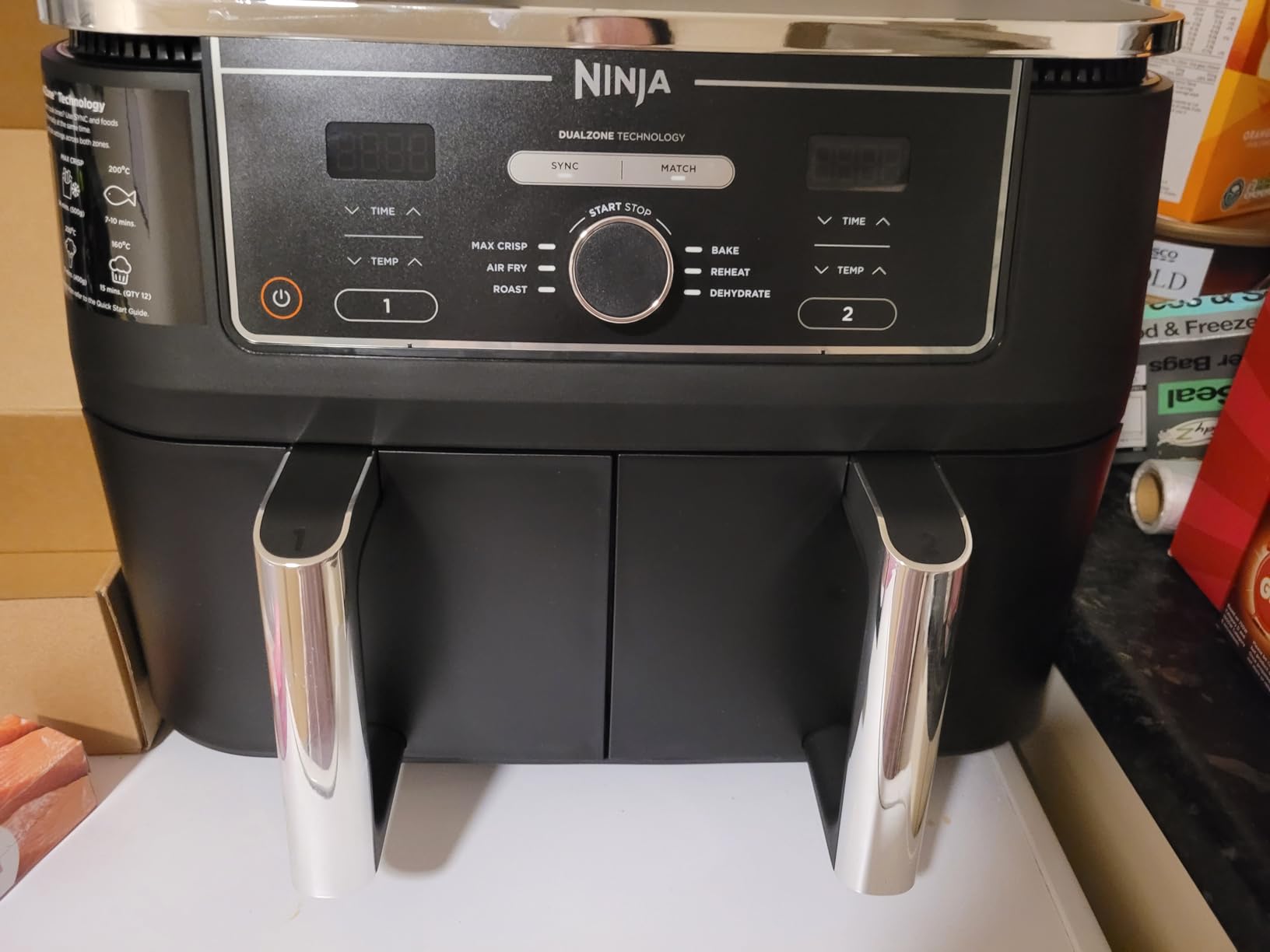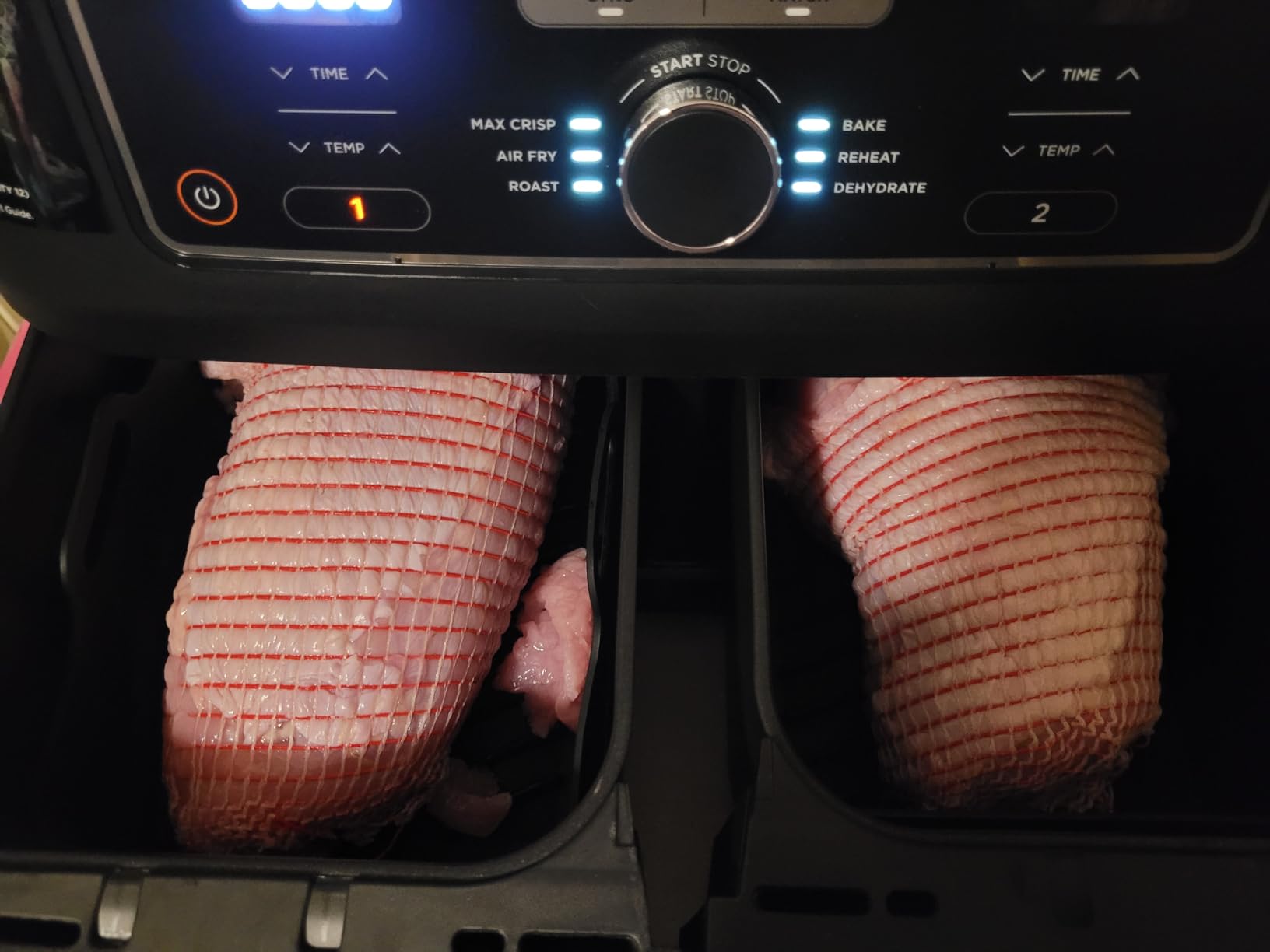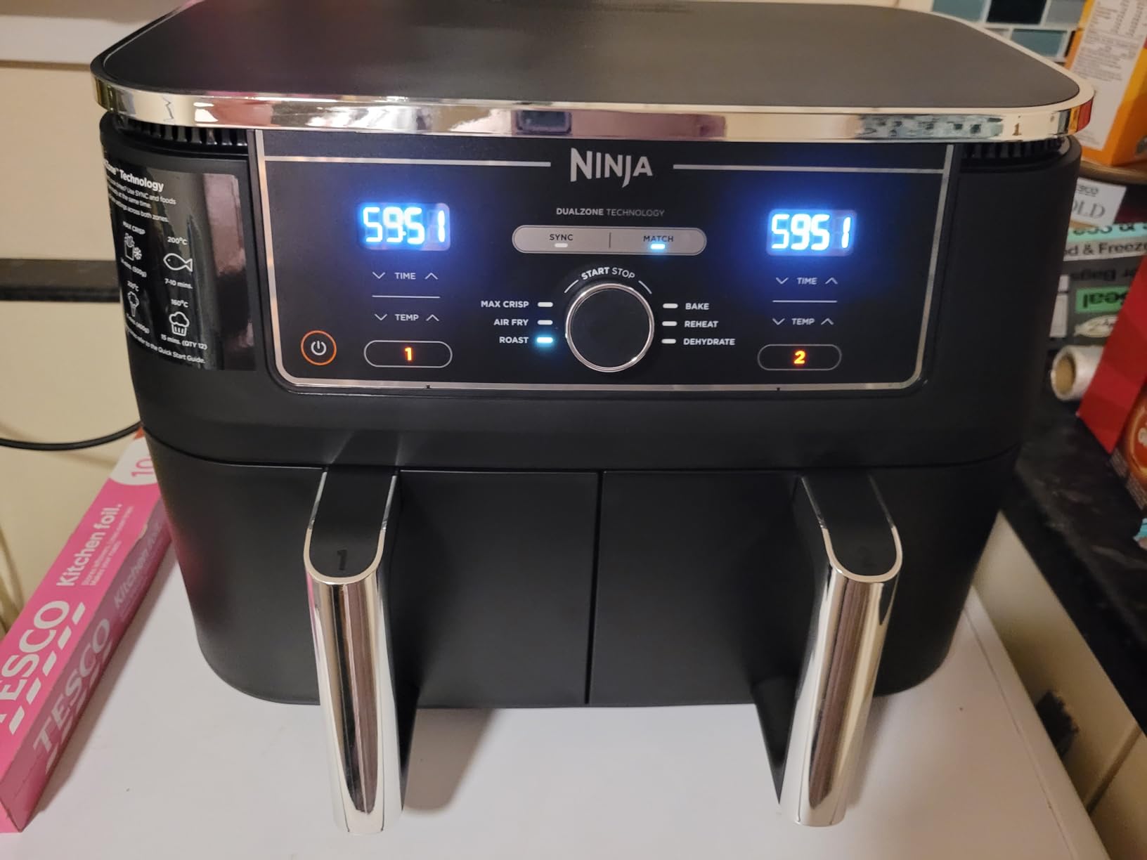 Absolutely loving my new gadget! After Ninja arrived, I made Christmas dinner ahead of time. Everything is easy to use, I used both sync and match cooking methods and it was easy. A few times I made the mistake of pressing the stop function while checking for food to turn, causing me to have to reprogram the temperature and time, if you just open the drawer it will pause and then continue once the drawer is open put it back. The only downside so far is that the cable may be longer. I bought the air fryer accessory kit and itโs great ๐