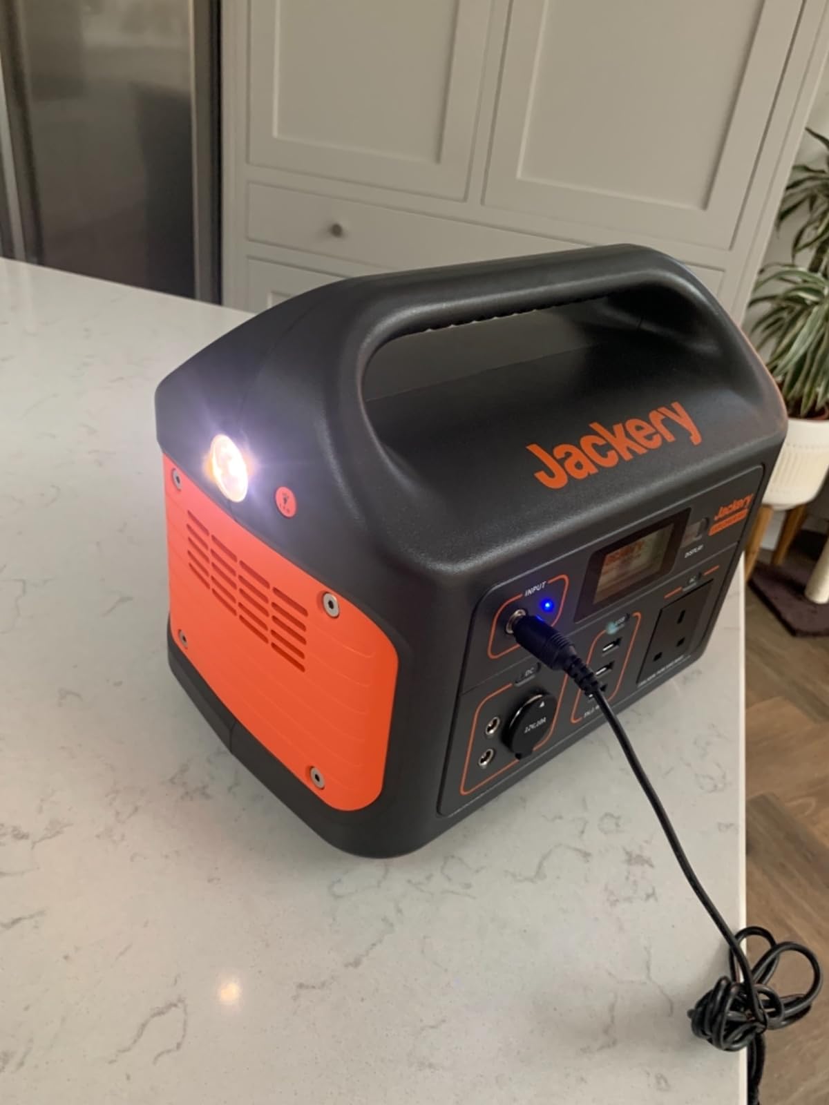 Really pleased with this power station, initially purchased for my VW camper as it saved me all the hassle of installing a leisure battery. It powers all that we need in the vehicle, without having to run the engine to charge up your gadgets, if they are running low on power and need recharging. We even have a small 60w heater for colder nights and the 'Jackery 500' has never run out of power. We would like to save up and purchase the Jackery Solar Panel so we can go 'wild camping' in the future. Brilliant..... lightweight and easy to use!!