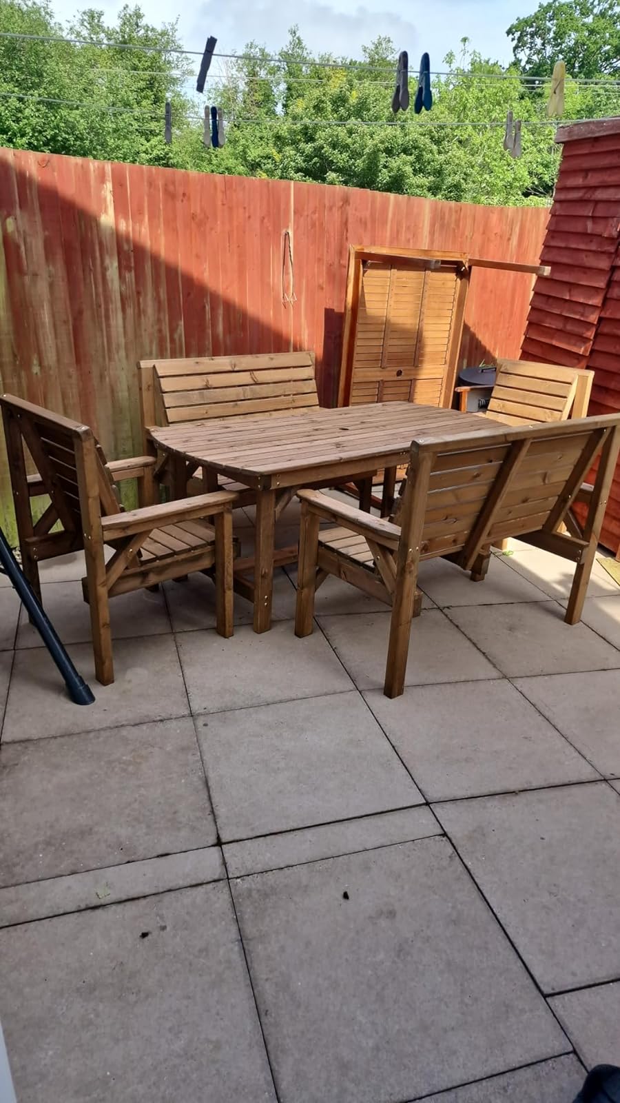 I am so pleased with my patio set. It is amazing value for money and looks/feels so well made. Proud to support a British company. Only gripe is the communication from seller could have been better. Delivery driver was v.good and professional.