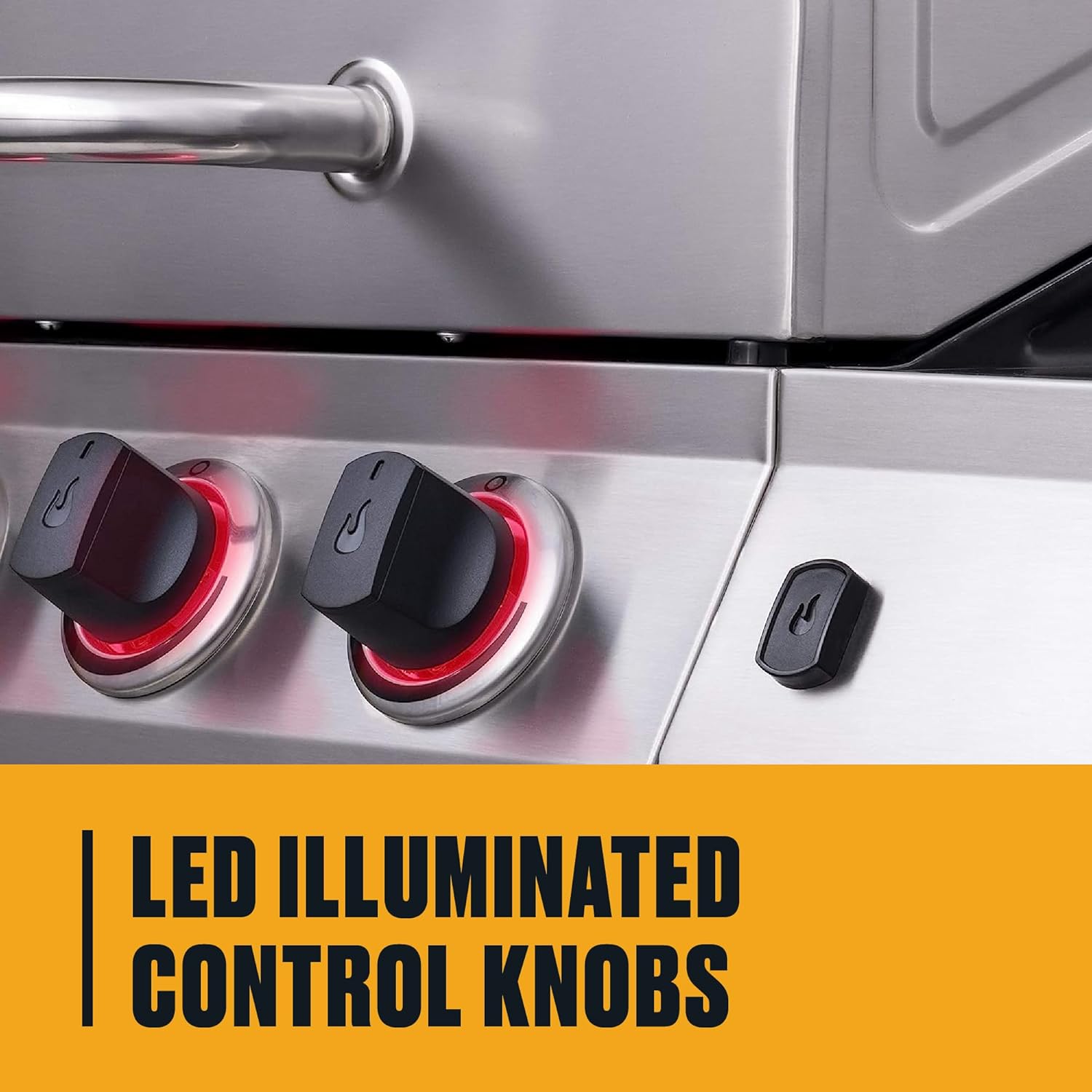 - CONTROL KNOBS: Control knobs raise and lower the flame for each burner. Turn clockwise to increase the heat and counterclockwise to decrease. They're LED-illuminated to give the grill distinctive style and provide ambient light when grilling at night.