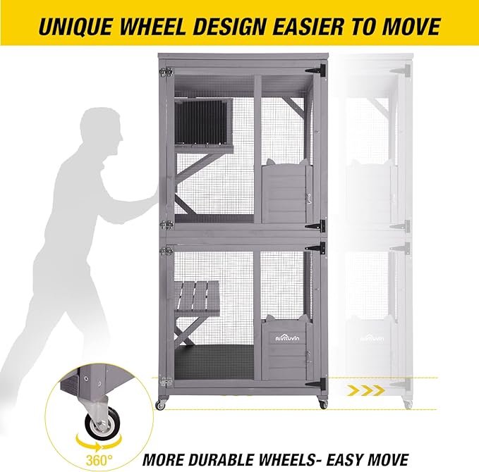 • Aivituvin Cat Cage Wooden Indoor Outdoor Cat House Large Enclosure with Run on Wheels 70.9