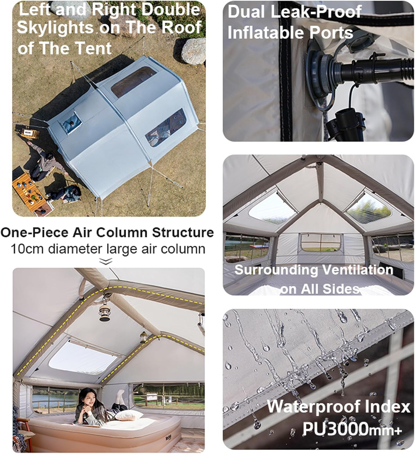 Inflatable Camping Tent, 8 Man Big Air Tent with Pump Large Family House Tent Mesh Windows & Stove Jack, PU3000+ / PU2000+ Waterproof Glamping 4 Season Tents, Blow Up Tents, Quick Build