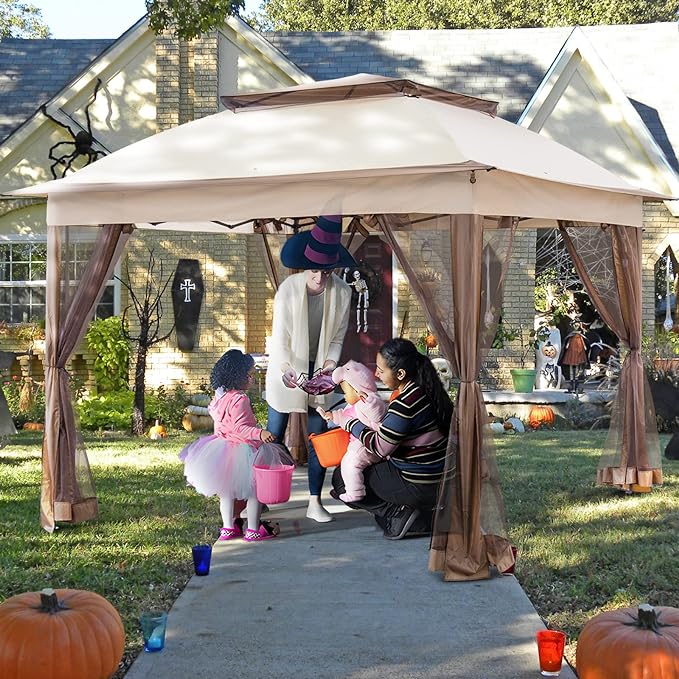 • Joyside 11'x11' Pop Up Gazebo for Patios Canopy Tent with Sidewalls Outdoor Gazebo with Mosquito Netting Pop Up Canopy Shelter Wedding Tent (Beige)
