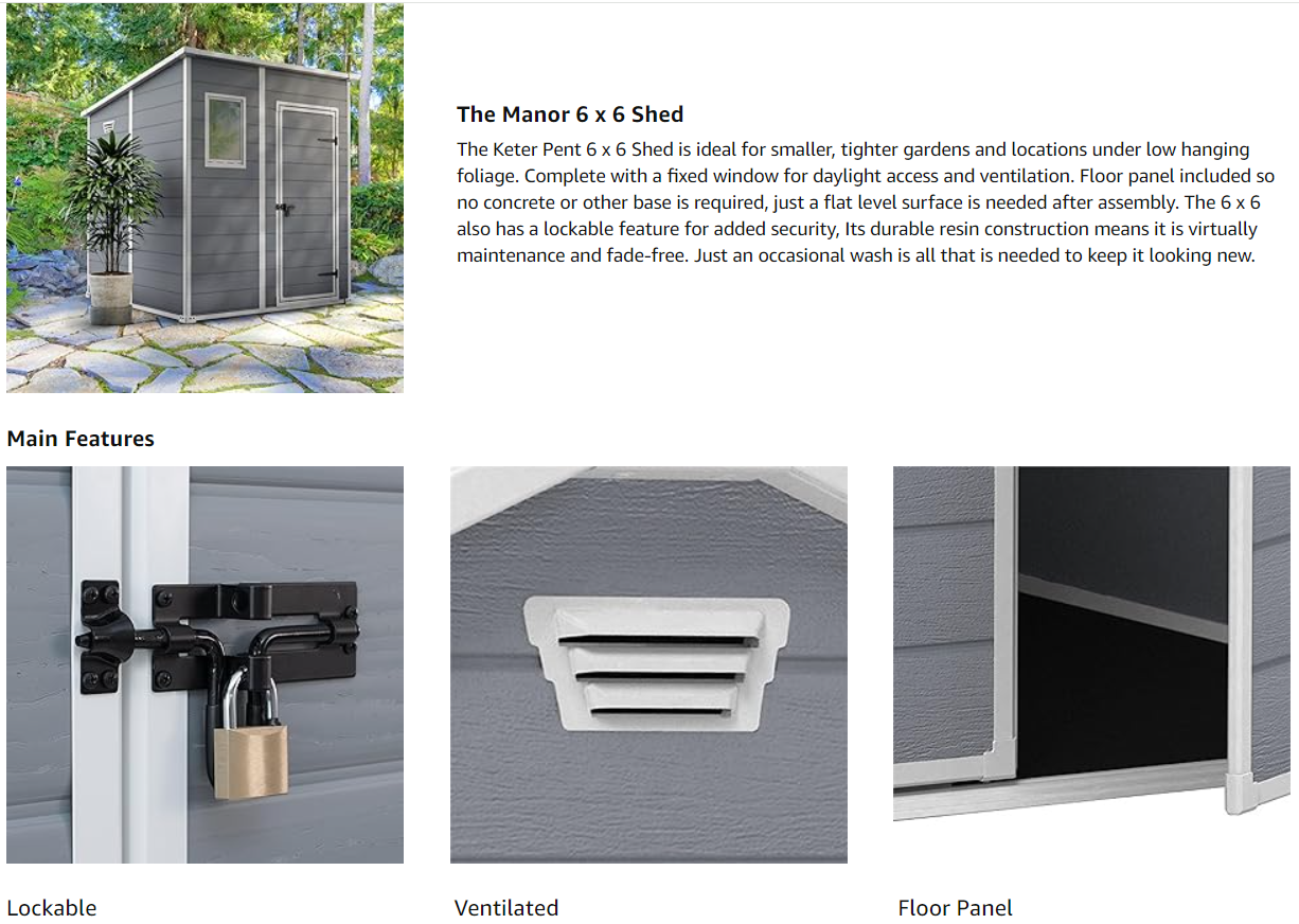 Keter Manor Pent Garden Storage Shed 6 x 6 feet - Grey, 200.6 cm*183.5 cm*183.0 cm