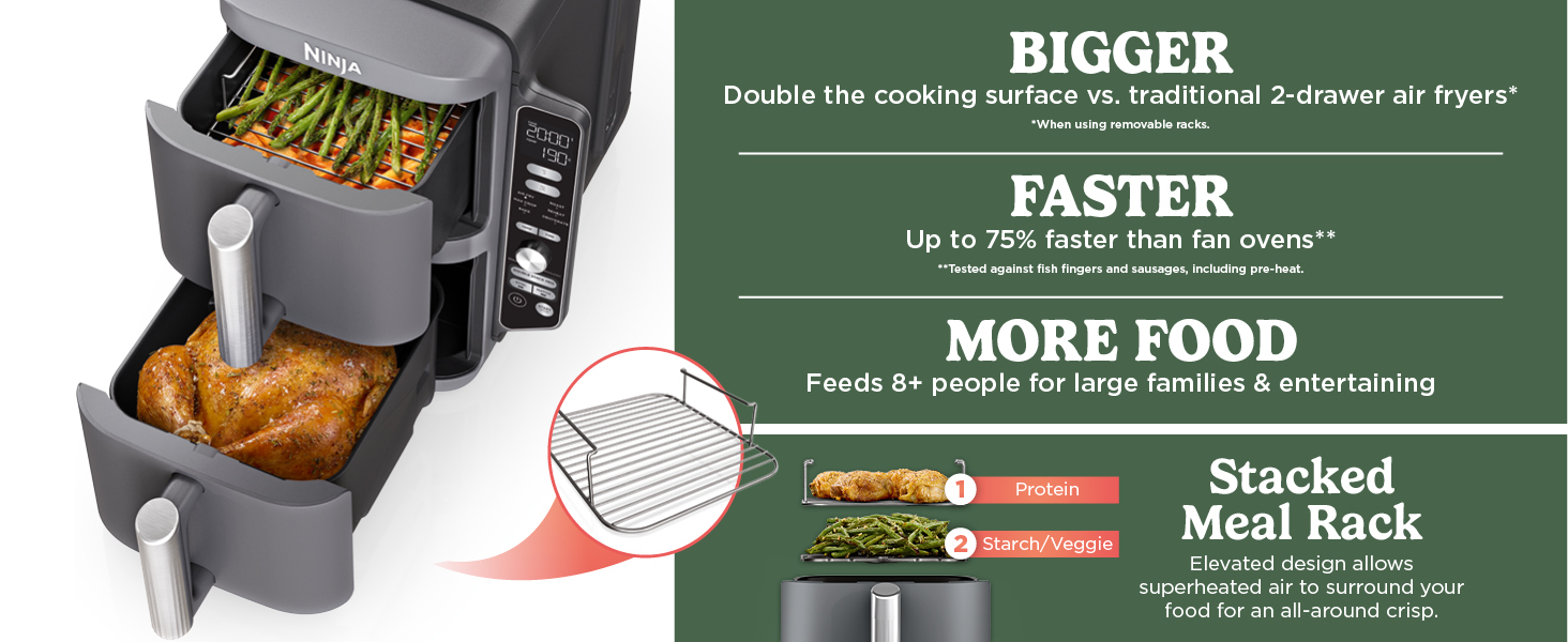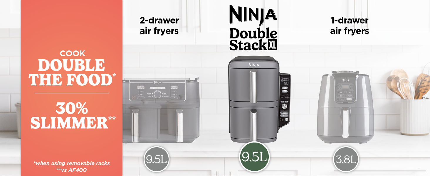 I’m really impressed with the Ninja Double Stack XL Air Fryer. Not only does its vertical dual-drawer design save valuable counter space, but it also fits neatly under my kitchen cabinets, which is a major improvement over my old single-basket tower air fryer, which was much bulkier. This Ninja model is surprisingly slim and allows me to cook two different foods at the same time, maximizing efficiency. It's also noticeably quieter when running. If you’re looking for a slim and high-quality air fryer, this model is definitely worth considering.