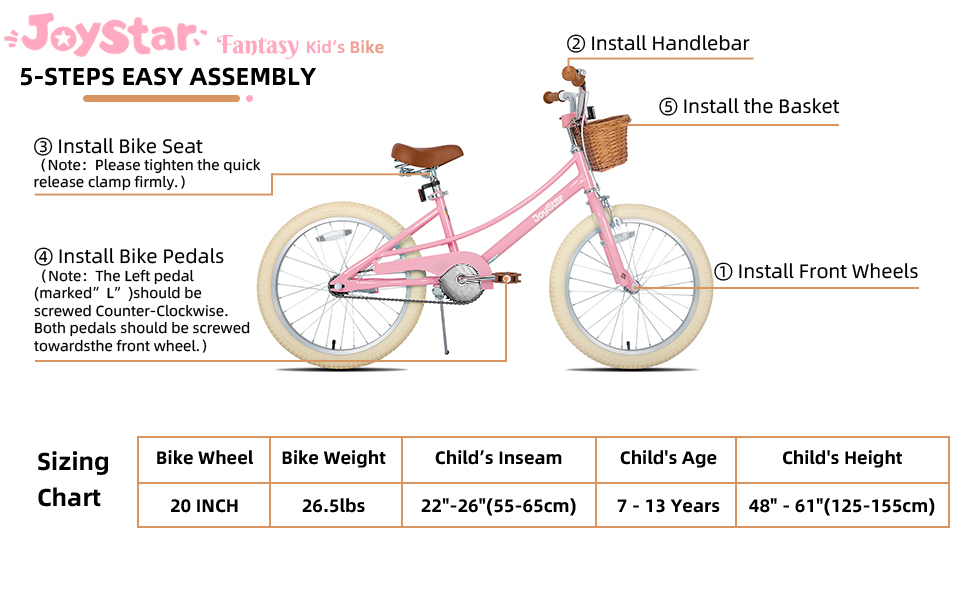 • 1, Retro Design and Colors! JOYSTAR Fantasy Princess 20 Inch Girls bike with bright colors, stylish and charming. DIY decals and beautiful basket add extra fun to the ride. Soft seat offers more comfort in riding.